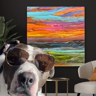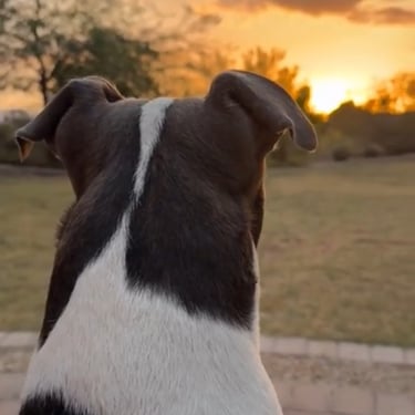 From then on, my paintings were born from Theodore’s quiet fascination with sunsets. Every evening, he sits and watches in stillness until the very last glow fades from the sky. If we sit with him and talk, he moves away—sunsets, for him, are sacred, silent moments. I often post them live in silence on social media. People have enjoyed taking the time to breathe and take a break to watch the Arizona sunset with Theodore. (In silence of course!) The woman who once saw him watching the sun on a mountain revealed to us his beginning, and he continues to show us the gift of silence at day’s end.